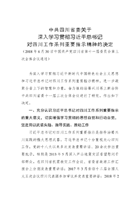 中共四川省委关于深入学习贯彻习近平总书记对四川工作系列重要指示精神的决定.docx