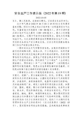 安全生产工作提示函(2022年第19期).docx