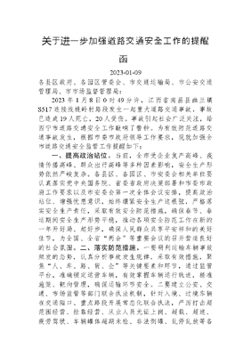 关于进一步加强道路交通安全工作的提醒函.docx