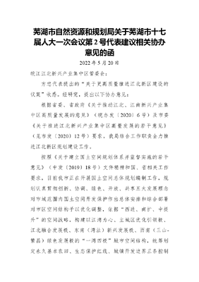 芜湖市自然资源和规划局关于芜湖市十七届人大一次会议第2号代表建议相关协办意见的函.docx