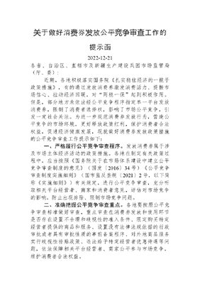 关于做好消费券发放公平竞争审查工作的提示函.docx