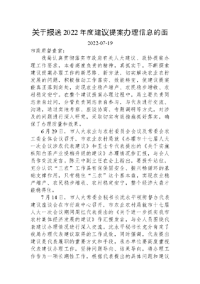 关于报送2022年度建议提案办理信息的函.docx