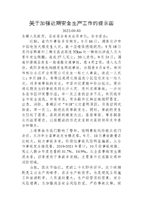 关于加强近期安全生产工作的提示函.docx