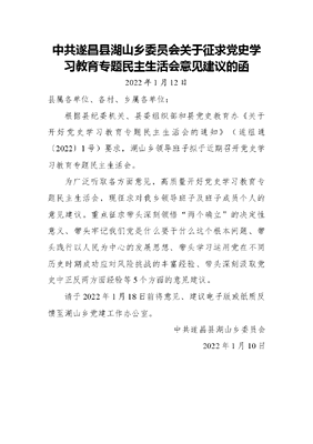 中共遂昌县湖山乡委员会关于征求党史学习教育专题民主生活会意见建议的函.docx