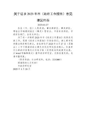关于征求2023年市《政府工作报告》意见建议的函.docx