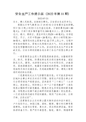 安全生产工作提示函(2022年第11期).docx