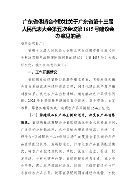 广东省供销合作联社关于广东省第十三届人民代表大会第五次会议第1615号建议会办意见的函.docx