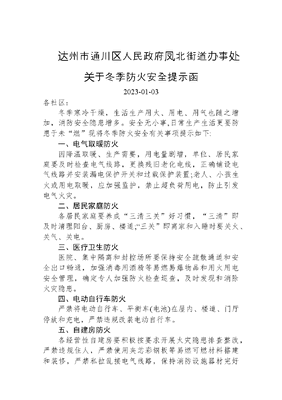 达州市通川区人民政府凤北街道办事处关于冬季防火安全提示函.docx