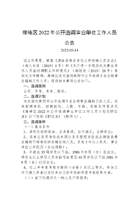 雁峰区2022年公开选调事业单位工作人员公告.docx