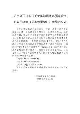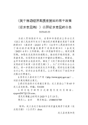 《关于推动经济高质量发展的若干政策(征求意见稿)》公开征求意见的公告.docx