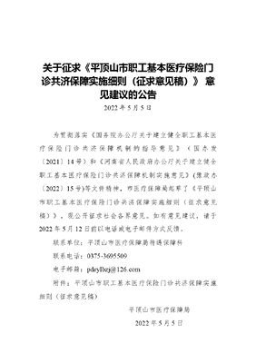 关于征求《平顶山市职工基本医疗保险门诊共济保障实施细则(征求意见稿)》+意见建议的公告.docx