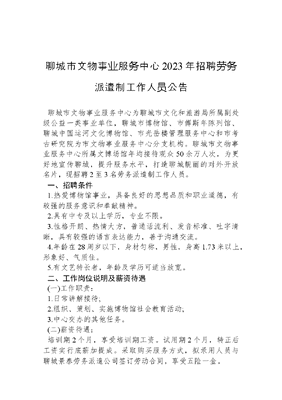 聊城市文物事业服务中心2023年招聘劳务派遣制工作人员公告.docx