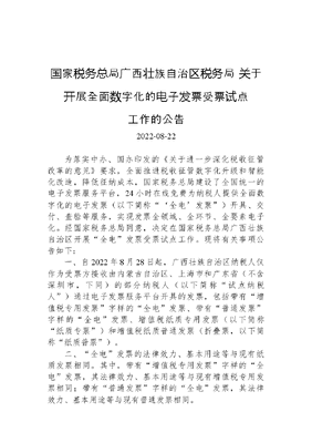 国家税务总局广西壮族自治区税务局+关于开展全面数字化的电子发票受票试点.docx