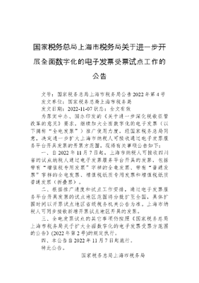 国家税务总局上海市税务局关于进一步开展全面数字化的电子发票受票试点工作的公告.docx