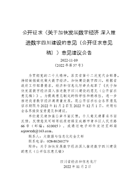 公开征求《关于加快发展数字经济+深入推进数字四川建设的意见(公开征求意见稿)》意见建议公告.docx