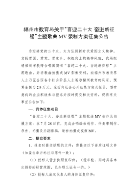 福州市教育局关于“喜迎二十大+奋进新征程”主题歌曲MV录制方案征集公告.docx