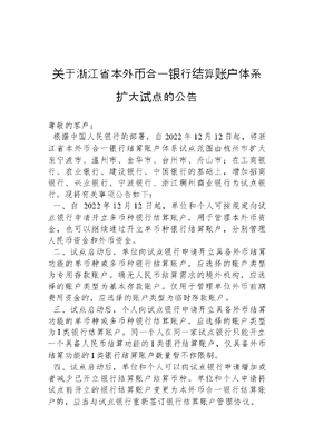 关于浙江省本外币合一银行结算账户体系扩大试点的公告.docx