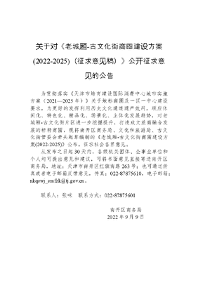 关于对《老城厢-古文化街商圈建设方案(2022-2025)(征求意见稿)》公开征求意见的公告.docx