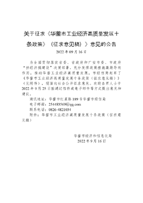 关于征求《华蓥市工业经济高质量发展十条政策》(征求意见稿)》意见的公告.docx