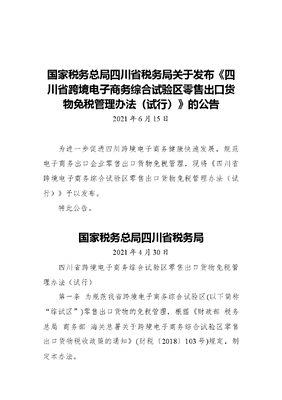国家税务总局四川省税务局关于发布《四川省跨境电子商务综合试验区零售出口货物免税管理办法(试行)》的公告.docx