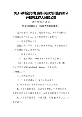 关于深圳宝安对口帮扶河源龙川指挥部公开招聘工作人员的公告.docx