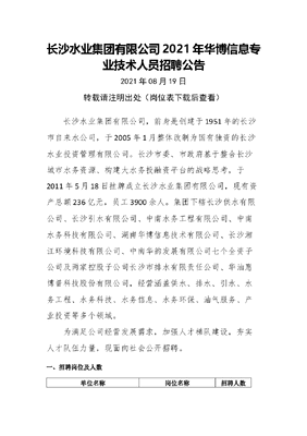 长沙水业集团有限公司2021年华博信息专业技术人员招聘公告.docx
