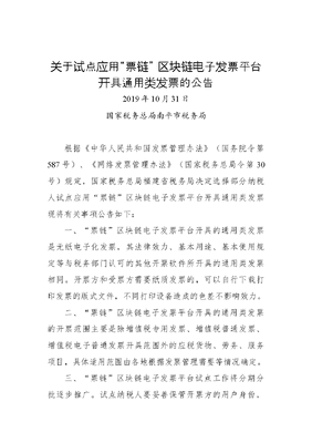 关于试点应用“票链”区块链电子发票平台开具通用类发票的公告.docx
