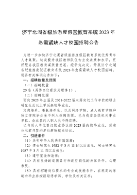 济宁北湖省级旅游度假区教育系统2023年急需紧缺人才校园招聘公告.docx