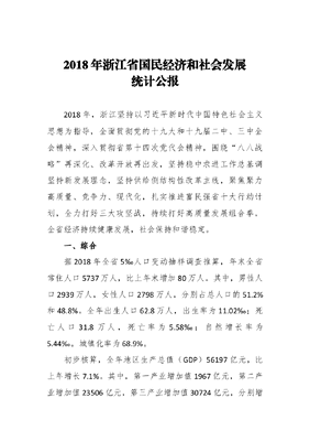2018年浙江省国民经济和社会发展统计公报.docx