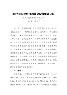 2017年国民经济和社会发展统计公报.docx