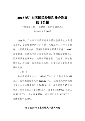 2018年广东省国民经济和社会发展统计公报.docx