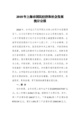 2018年上海市国民经济和社会发展统计公报.docx