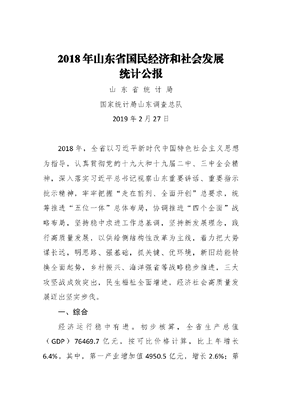 2018年山东省国民经济和社会发展统计公报.docx