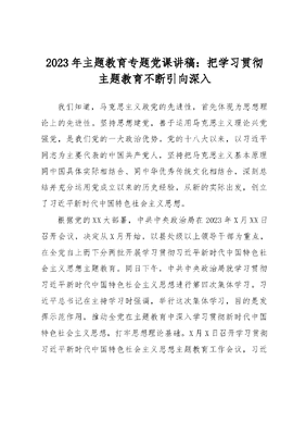 第二批主题教育支部书记党课讲稿:凝心铸魂学思想 笃行实干建新功.docx