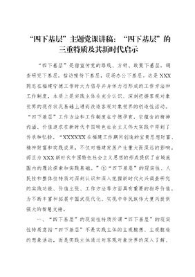 “四下基层”主题党课讲稿:“四下基层”的三重特质及其新时代启示.docx