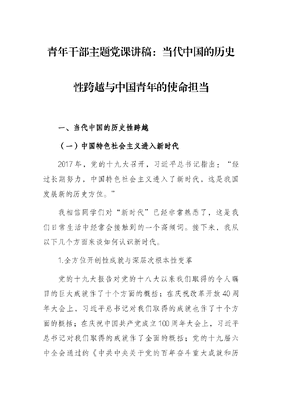 青年干部主题党课讲稿:当代中国的历史性跨越与中国青年的使命担当.docx