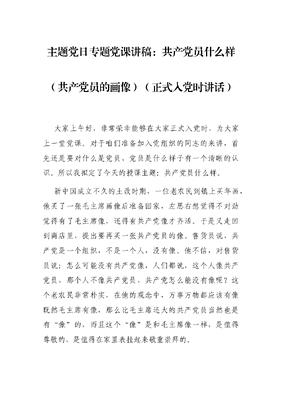 主题党日专题党课讲稿:共产党员什么样(共产党员的画像)(正式入党时讲话).docx