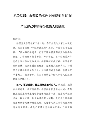 机关党课:永葆政治本色 时刻反躬自省 在严以律己中坚守为政做人的底线.docx