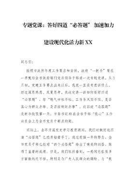 专题党课:答好四道“必答题” 加速加力建设现代化活力新XX.docx