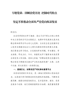 专题党课:回顾治党历史 把握时代特点 坚定不移推动全面从严治党向纵深发展.docx