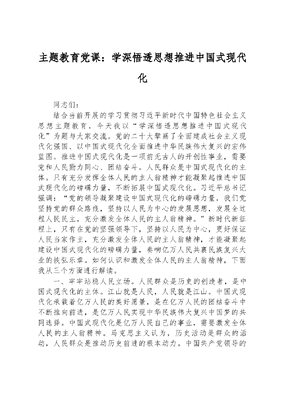 主题教育党课:学深悟透思想 推进中国式现代化.docx