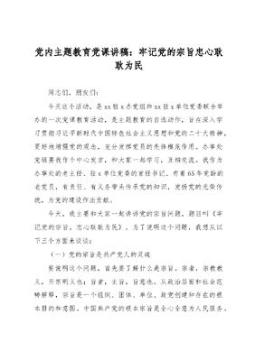 党内主题教育党课讲稿:牢记党的宗旨忠心耿耿为民.docx