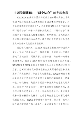 主题党课讲稿:“两个结合”的光辉典范.docx