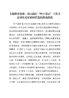 主题教育党课:深入践行“四下基层”工作方法 切实走好新时代党的群众路线.docx