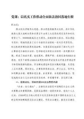 党课:以扎实工作推动全面依法治国落地生根.docx
