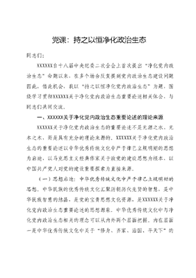 “弘扬延安精神净化政治生态”专题党课讲稿.docx