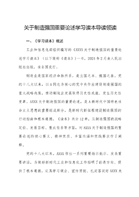 关于制造强国的重要论述学习读本导读领读(配同名PPT讲稿).docx