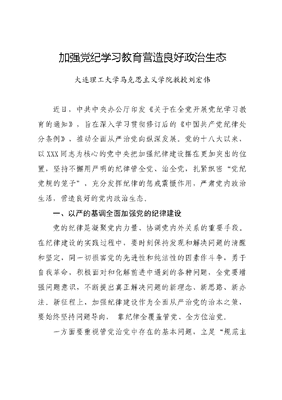 党纪学习教育∣08党课讲稿:加强党纪学习教育营造良好政治生态——大连理工大学马克思主义学院教授刘宏伟.docx