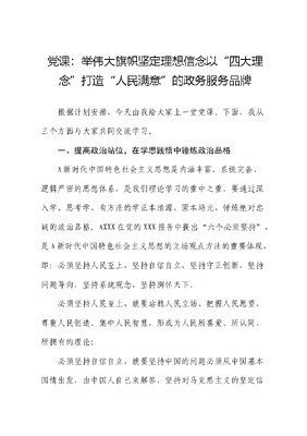 行政审批系统党课:举伟大旗帜 坚定理想信念 以“四大理念”打造“人民满意”的政务服务品牌.docx