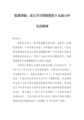 党课讲稿:深入学习贯彻党的十九届六中全会精神.docx